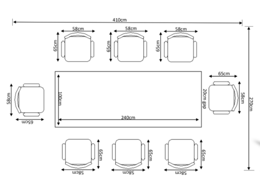 Dining Chair x8 | 88cm (seat height 49cm) | 58cm | 58cm (seat depth 46cm) |