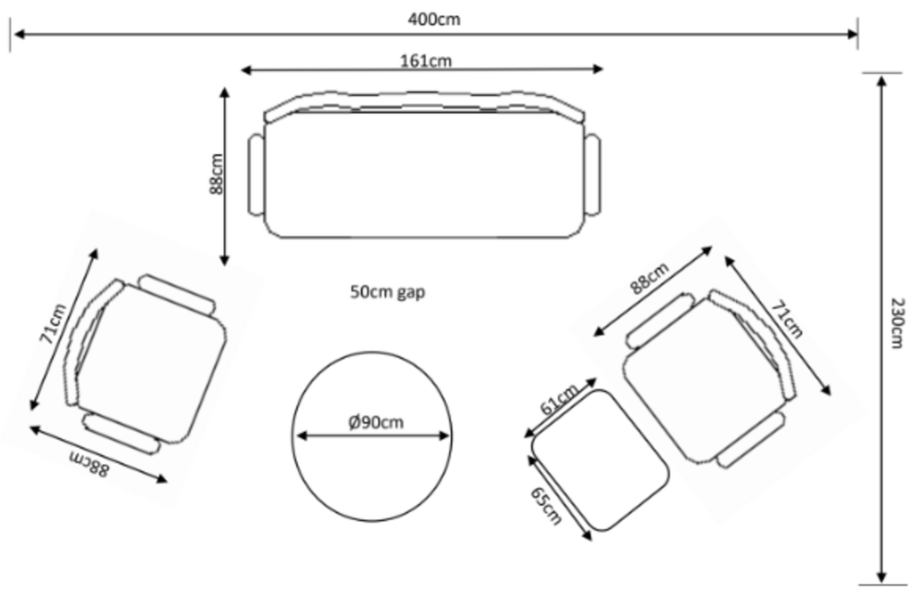 2.5 Seat Sofa x1 | 89cm | 162cm | 74cm |