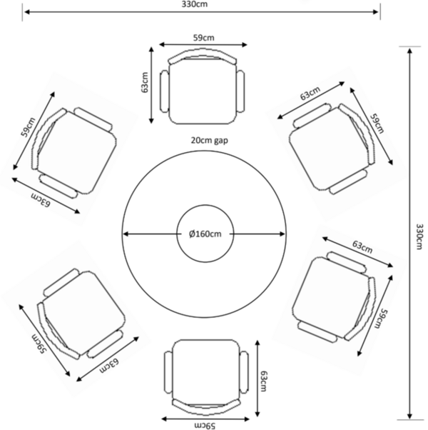 The 4 Seasons Outdoor Barista 6 Seat Round Dining Set Latte is chic, classy and stylish - there is nothing else quite like it. Dining chairs that are minimalist in design, and paired with a chunky 160cm teak table (Lazy Susan included) with a fabulous cross-leg aluminium pedestal. The weatherproof rope (woven around the stainless steel frame) accentuates the chair frame, and creates a formal yet relaxed edge. Designed for any style of outdoor space. Enjoy a cup of coffee and relax in style and comfort. You are welcome to request a custom quote for the items, if you would like to adjust or add items to the set shown. Just call us, email us, or visit our showroom for the lowest prices.