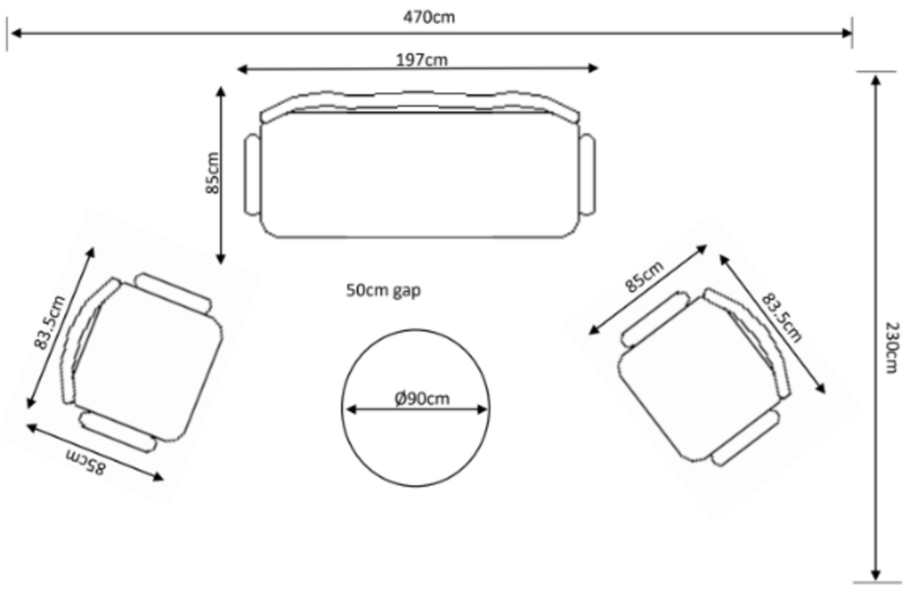 3 Seater Sofa x1 | 72cm | 197cm | 85cm |
