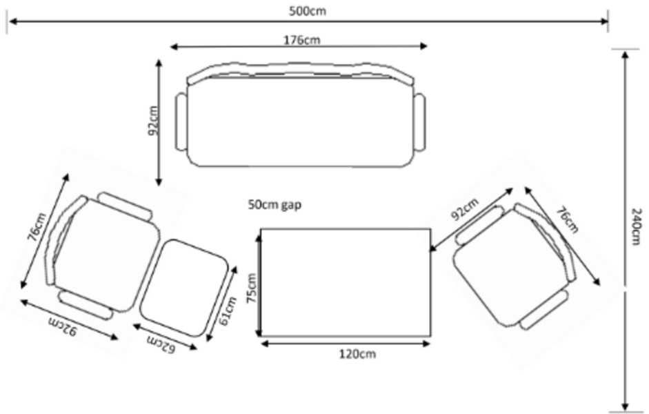 2.5 Seater Sofa x1 | 90cm | 176cm | 90cm |