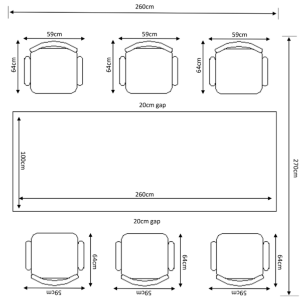 Rectangular Dining Table x1 | 71cm | 260cm | 100cm |