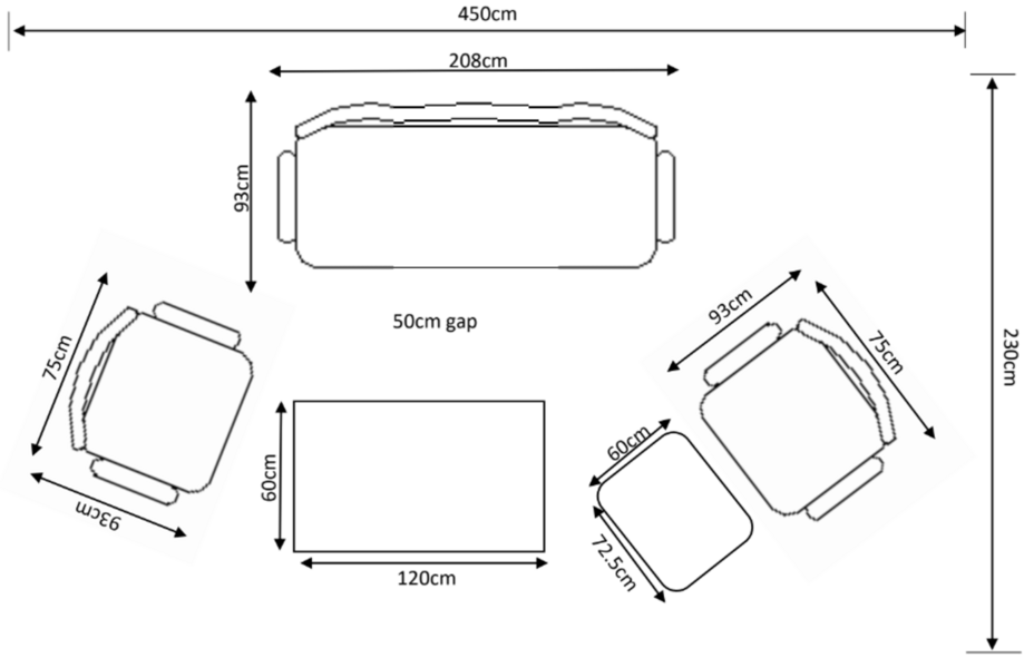 3 Seat Sofa x1 | 88.5cm | 208cm | 93cm |