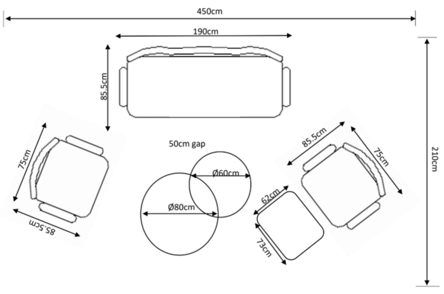 Lounge Chair x2  | 82cm  | 75cm  | 85.5cm  |